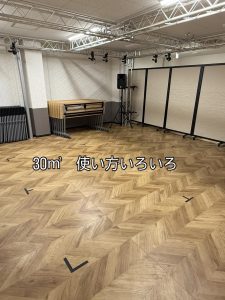 広さ30㎡の大会議室がリニューアルオープンしました。少人数〜中規模の会議やセミナー、ワークショップ等に最適な多目的スペースです。 また、簡易防音仕様となっており、楽器の個人練習や音楽系ワークショップ、軽めのエクササイズ用途にもご利用いただけます。 ※目安として、アコースティックギター、バイオリン、電子ピアノ(スピーカー利用可)、歌唱など、90〜95dB程度までの音量を想定したご利用が可能です。 ただし、防音性能には限りがあるため、ドラムセットや高出力アンプ機材を使用した大音量での演奏はご遠慮ください。 椅子・机はレイアウト変更が可能で、フレキシブルにご利用いただけます。 【基本設備】 • 広さ:約30㎡ • Wi-Fi完備(無料) • 大型テレビモニター(キャスター付き) • ホワイトボード(両面) • 長机:8台(折りたたみ式) • 椅子:30脚 • エアコン完備 【ご利用例】 会議/勉強会/説明会/セミナー/レッスン など